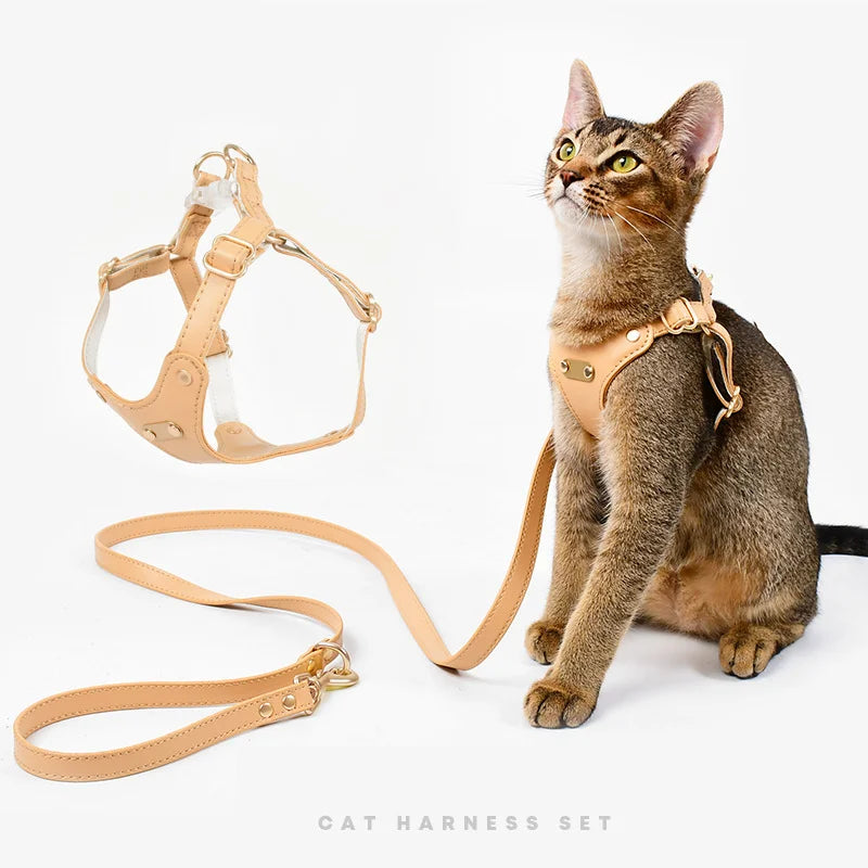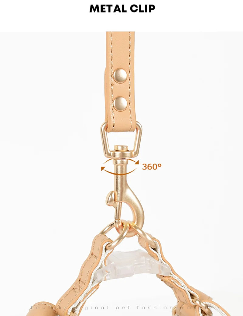 Walk your pet in style with this elegant PU leather harness and leash set. Designed for small dogs and cats, it offers comfort, durability, and a secure fit. The waterproof material makes it perfect for all seasons, while the adjustable straps ensure your furry friend stays snug and safe on every adventure.